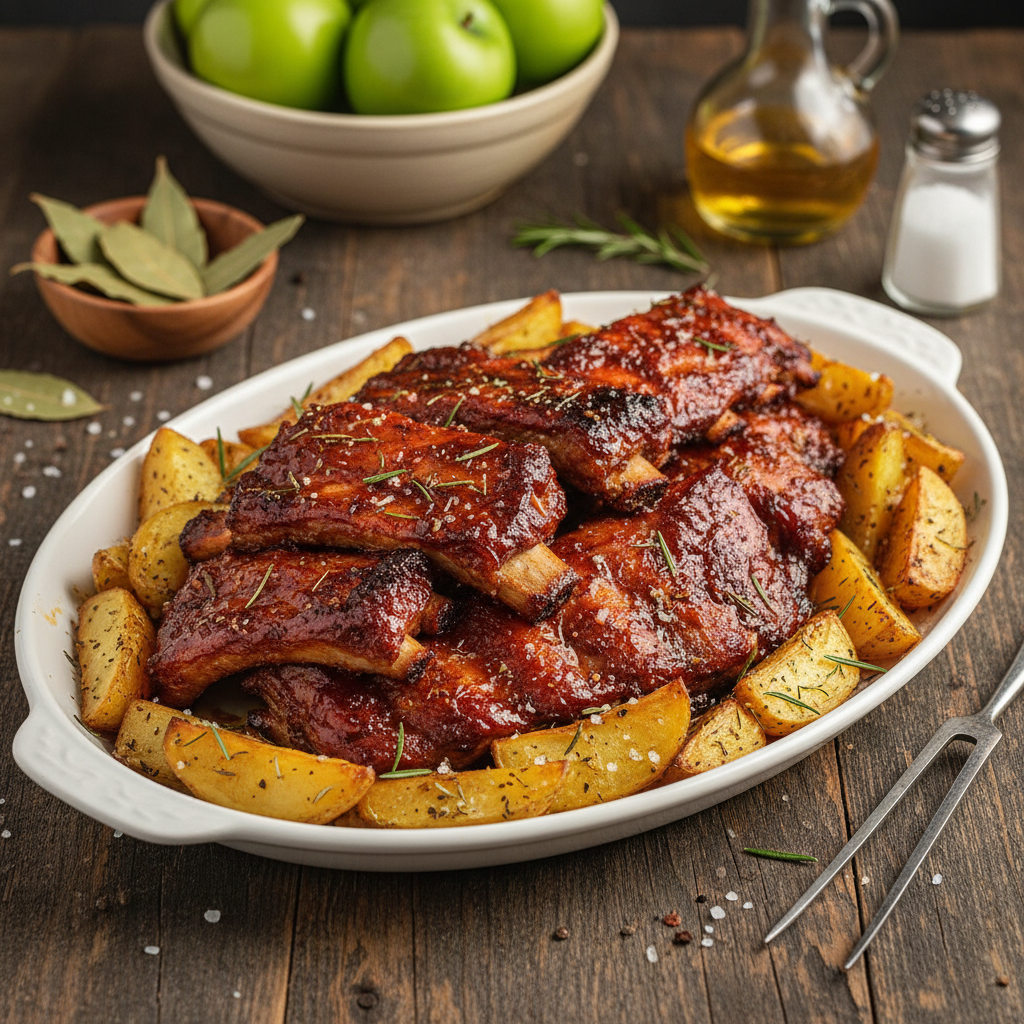 Gyvenant nuolatiniame bėgime, mes visi ieškome receptų, kurie nereikalautų visos dienos stovėjimo prie viryklės, bet tuo pačiu metu suteiktų maksimalų skonį ir pasitenkinimą. Šis receptas išsiskiria savo praktiškumu – mėsa ir garnyras gaminami vienu metu toje pačioje orkaitėje, kas reiškia ne tik mažiau sunaudotų indų, bet ir harmoningai susiliejančius skonius. Kepant bulvėms kartu su šonkauliais, jos sugeria nuostabius mėsos syvus bei prieskonius, įgaudamos neįtikėtiną aromatą ir traškumą, kurio neįmanoma išgauti verdant ar kepant atskiroje keptuvėje.