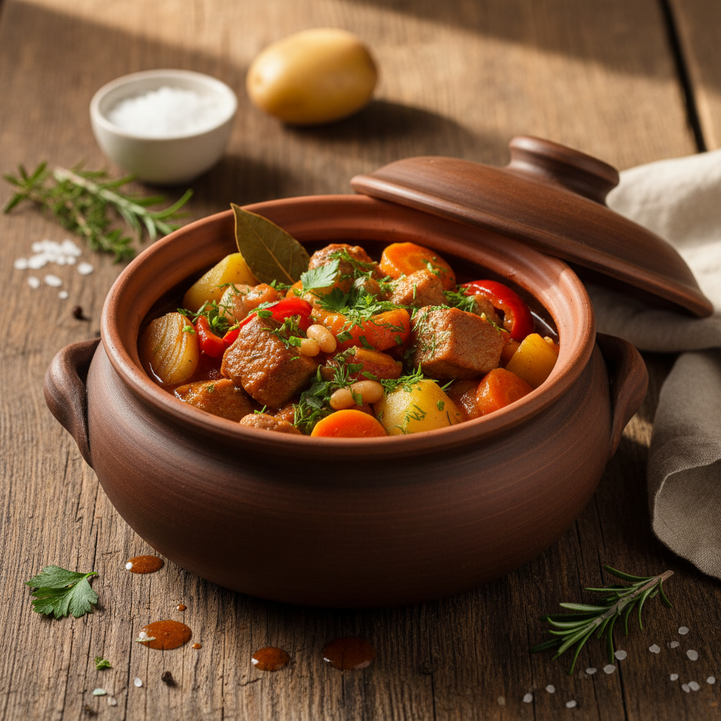 Skirtingai nei metaliniai puodai, molis įkaista tolygiai ir ilgai išlaiko šilumą. Tai leidžia mėsai ir daržovėms troškintis savo sultyse, beveik nenaudojant papildomų riebalų. Kiauliena tampa neįtikėtinai minkšta, tiesiog tirpstanti burnoje, o daržovės išlaiko savo formą, tačiau persigeria mėsos ir prieskonių aromatais. Be to, patiekiant maistą tuose pačiuose indeliuose, kuriuose jis buvo gamintas, jis ilgai išlieka karštas, todėl nereikia skubėti valgant – galima mėgautis kiekvienu kąsniu.